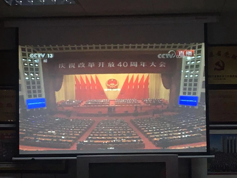 12月18日上午,公司組織全體黨員干部職工在黨員活動(dòng)室收看收聽中央慶祝改革開放40周年大會(huì)。