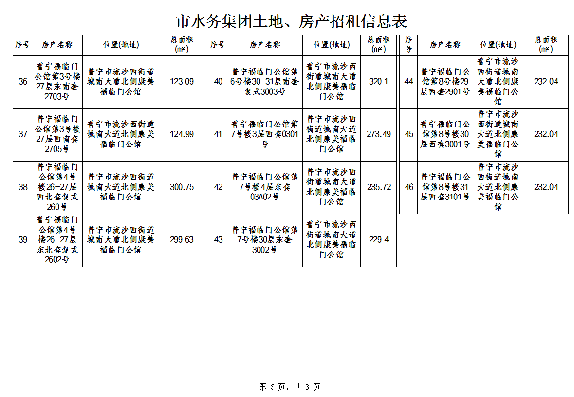 市水務(wù)集團(tuán)土地、房產(chǎn)招租信息